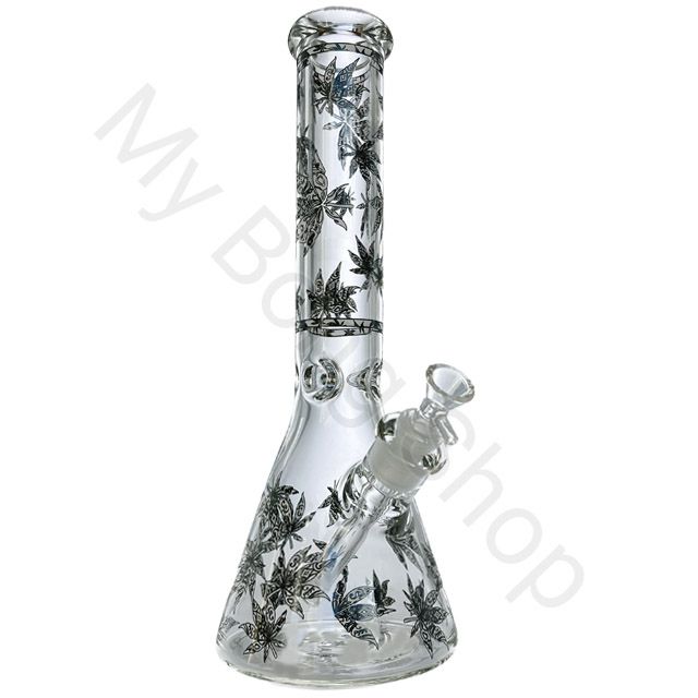 The black leaf design 36cm beaker glass bong is the ultimate smoking accessory if you want to enjoy your smoke in a sophisticated and stylish way. This beaker bong stands at an impressive 36cm tall and features a black leaf design, making it sure to stand out among your other water pipes.