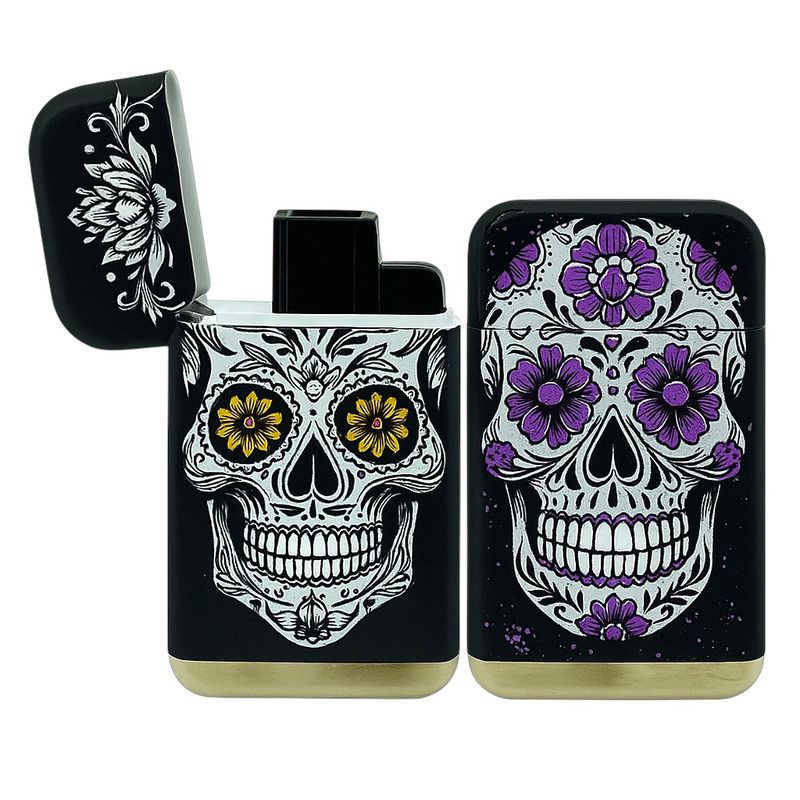 Double Jet Flip Lighter Colourful Skull Design