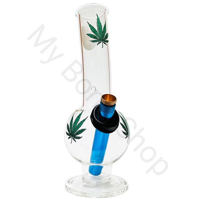 Small Glass Bong with Glass Base Leaf Design (20cm)